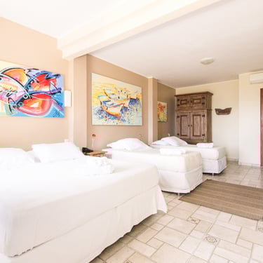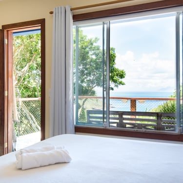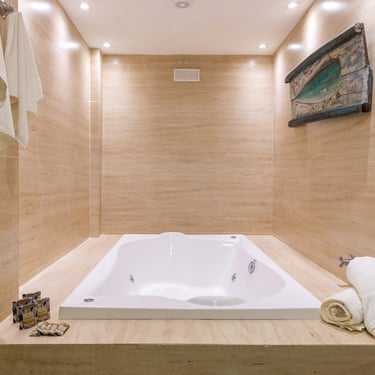 A suíte executiva oferece vista para o mar e inclui uma luxuosa banheira de hidromassagem dupla, perfeita para relaxar e desfrutar de momentos especiais a dois ou com amigos. Com capacidade para acomodar até 4 pessoas